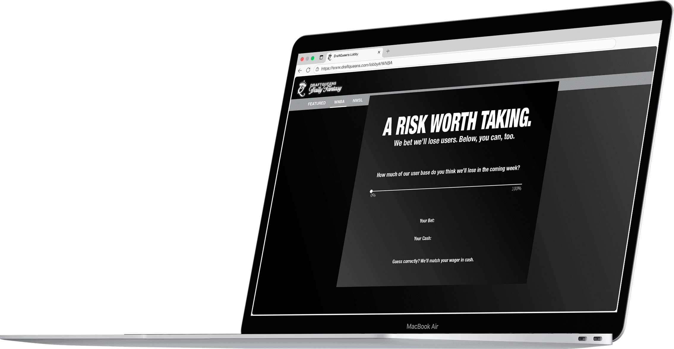 We bet that many people won’t be on board with the rebrand. So, we’re launching DraftQueens with one big bet: what percentage of our user base are we losing in response to our rebrand? The winners of the bet win their earnings and DraftQueens matches it.